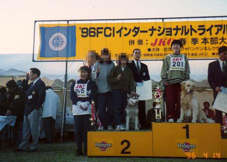 96年の本部会で2席になりました 家族みんな大喜び 表彰台の上にみんなで乗っちゃって こんな飼い主って他にいないかもね(^^ゞポリポリ |