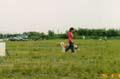 訓練競技会にも出ました 最初は訓練士さんに引いてもらって頑張ってます 最後までちゃんとできるかな〜って 見ている飼い主の方がドキドキ |