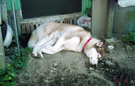 夏は暑くても外で寝てるヤツです ハスキーなのにチョビは結構暑さに強い子でした |