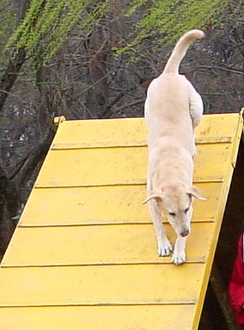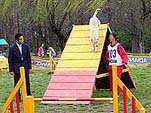 なにしろ、タイマー泣かせの同時(?)スタートから コースが素直なのをイイことに、行け行けドンドンのハンドリングで Aランプ下り、ドック・ウォーク下りのタッチを跳んで 『開掌挙手』が2回ありましたが、何とか最後まで走りました(^O^)/