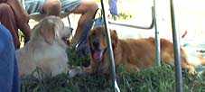 訓練競技会に出たボニーとフローラ マレンマとゴールデンレトリバー |