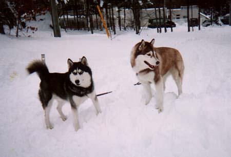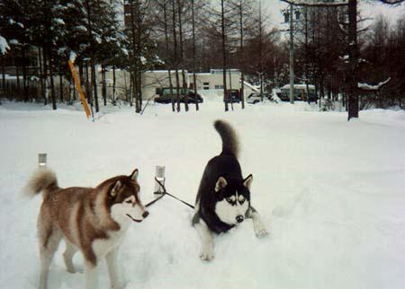 本能的に雪が大好きみたいです やはりハスキーなんだなぁ 雪の上で転がったり走り回ったり、あまりに嬉しそうな様子なので 橇の練習というより遊びに来たみたいでした ま、それでもいっか・・・ いつも暑がりなカイザー君もここの気温は気持ちがいいみたいです |