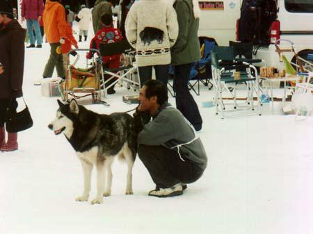 犬橇レースに参加です まだまだ上手にはできないけど 初心者のクラスで出てみました お父さんと待機中 |